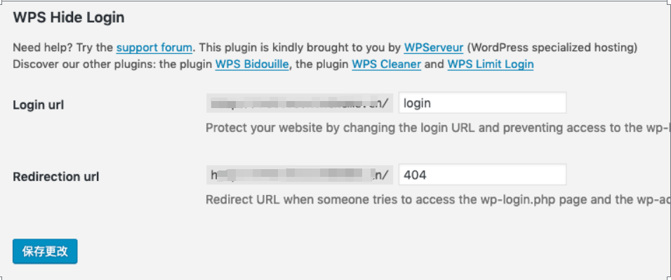 插件使用方法:1、直接在【网站后台 - 插件 - 安装插件】搜索WPS Hide Login 安装2、安装完成启用插件后,进入后台的设置——常规里,在最下面会出现“Login url”设置,输入要自定义的登录url后缀,如下图:3、然后点击“保存更改”...