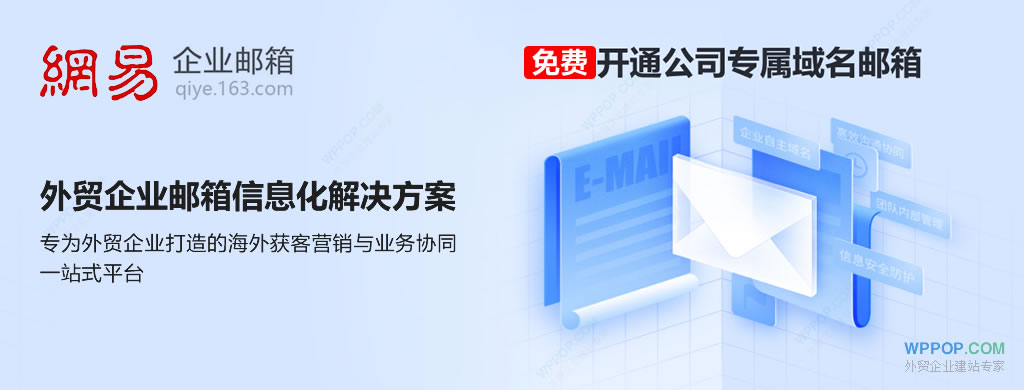 网易免费企业邮箱企业邮箱(Enterprise Mailbox)是指以您的域名作为后缀的电子邮件地址,按照企业自有域名开通的邮箱,比如:info@wppop.com。通常一个企业经常有多个员工要使用电子邮件,企业电子邮局可以让集团邮局管理员任意开设不同...