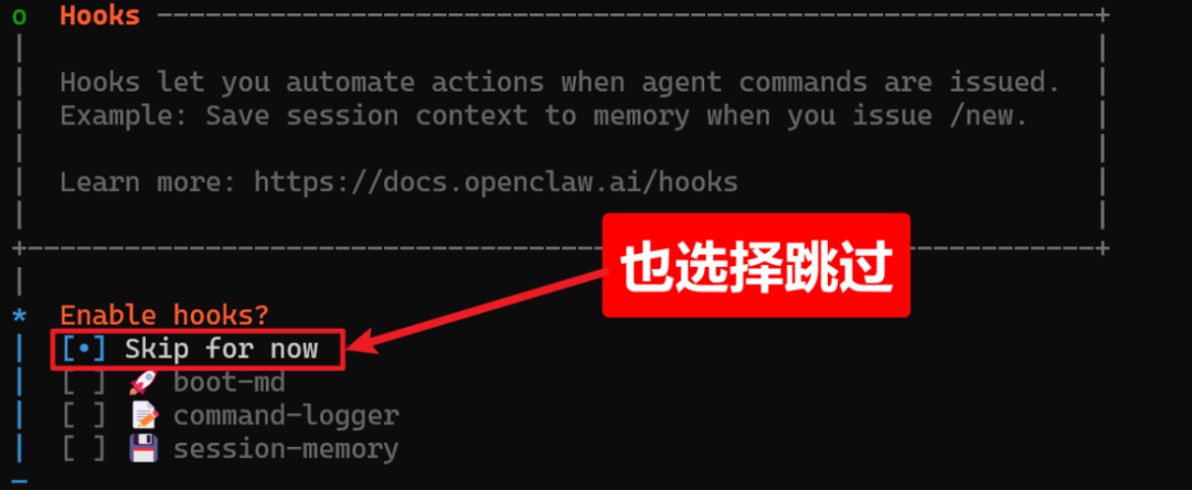 skill也先跳过,安装的比较慢,后续在使用过程中根据自己的需求再配置,