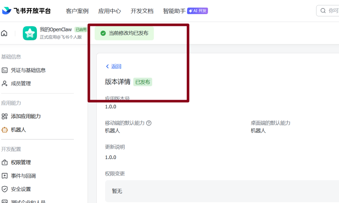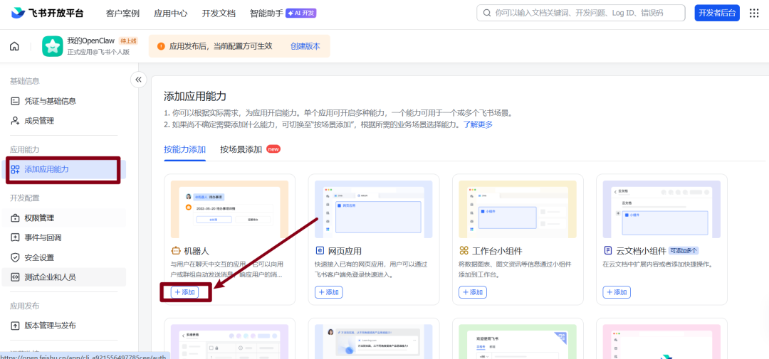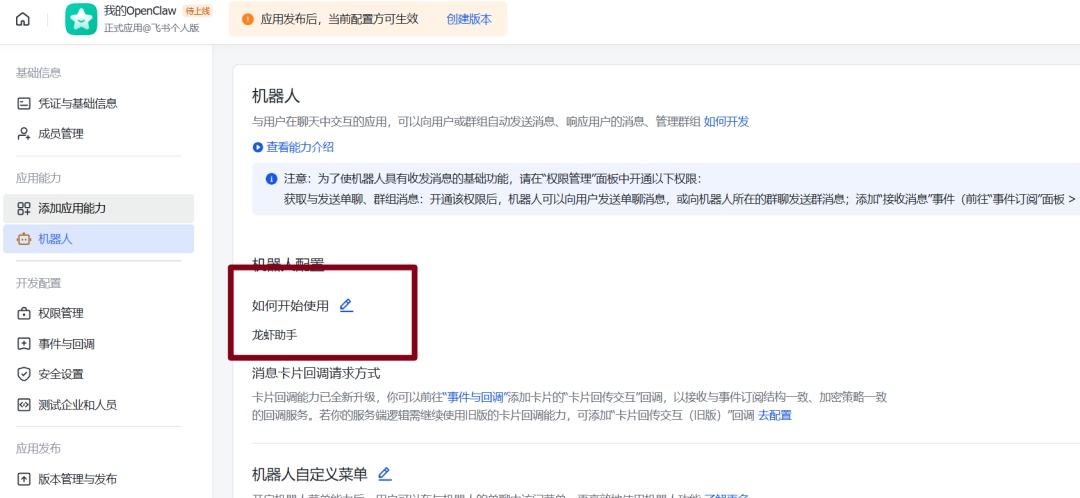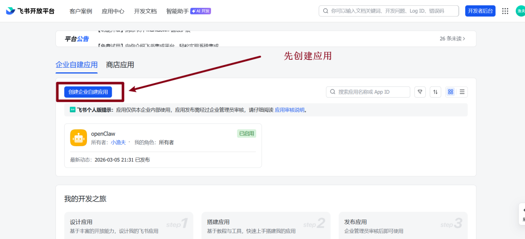 openclaw接入飞书,需要先在飞书平台创建机器人