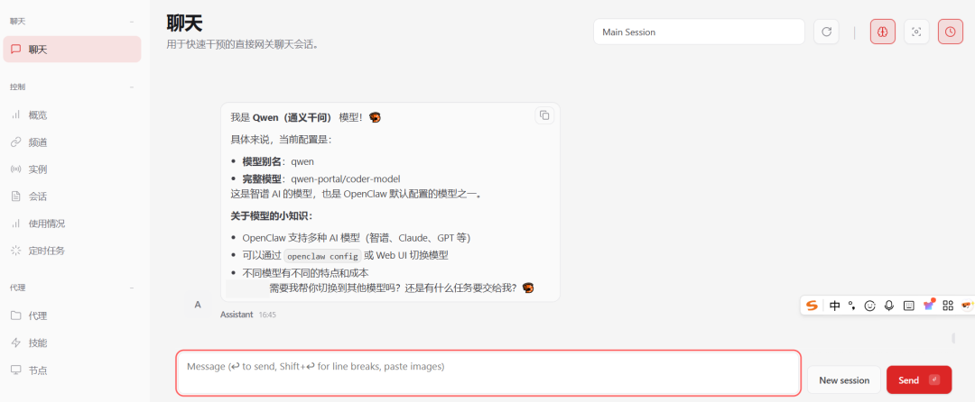 选择 Open the Web UI ,就会在浏览器自动打开 OpenClaw 的UI界面:
