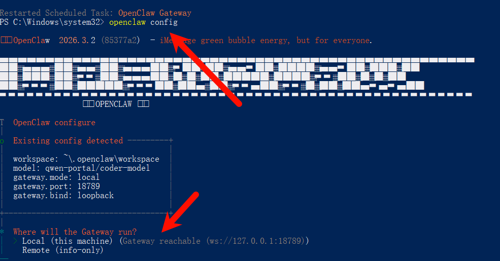 安装完成后,会自动进入配置向导,不过也有的会自动关闭,这个时候可以执行openclaw onboard 命令进入配置